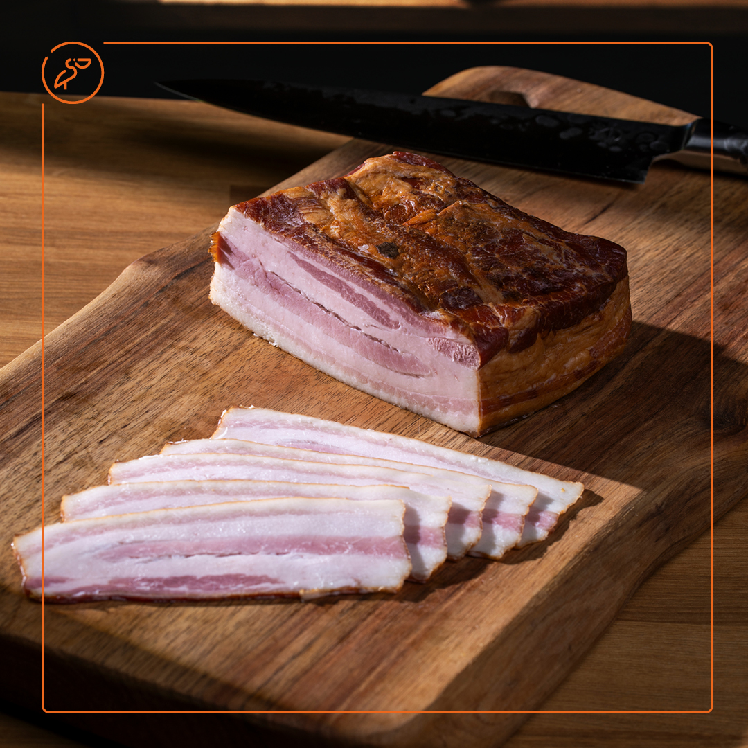 Oravská slanina je ideální na krájení na tenké plátky – do chleba, na prkénko, ale neztratí se ani v teplé kuchyni.
