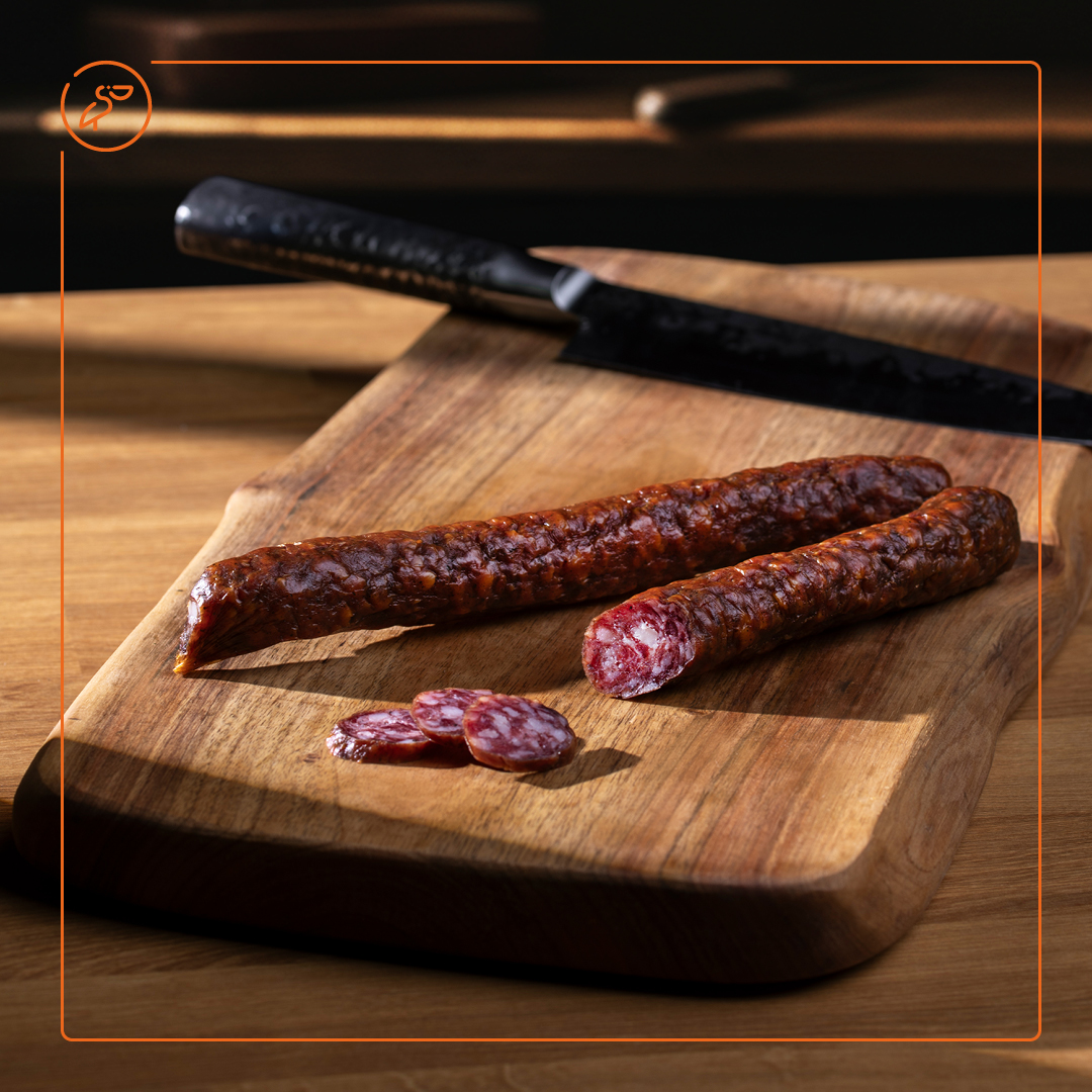 - Složení: vepřové maso, hovězí maso, vepřové hřbetní sádlo, směs koření, dusitanová sůl (< 2 %), startovací kultura, stabilizátor E451, antioxidant E301, celulózový obal.