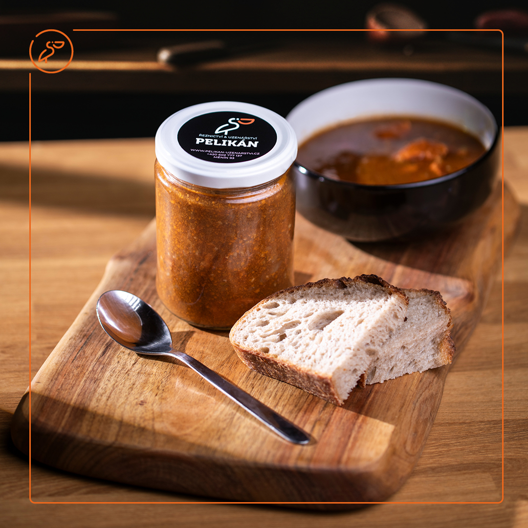 Poctivý guláš připravený z kousků vepřového masa, cibule, papriky a koření, pomalu tažený do měkka a zavařený přímo do sklenice. Díky šetrné konzervaci si uchovává plnou chuť, výrazné aroma i hutnou omáčku.